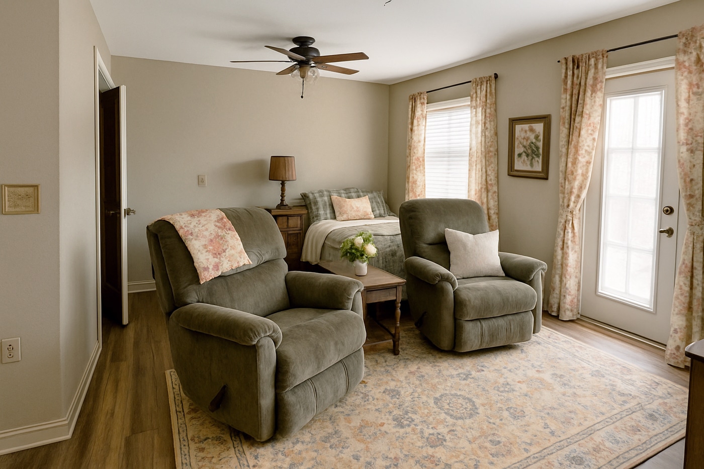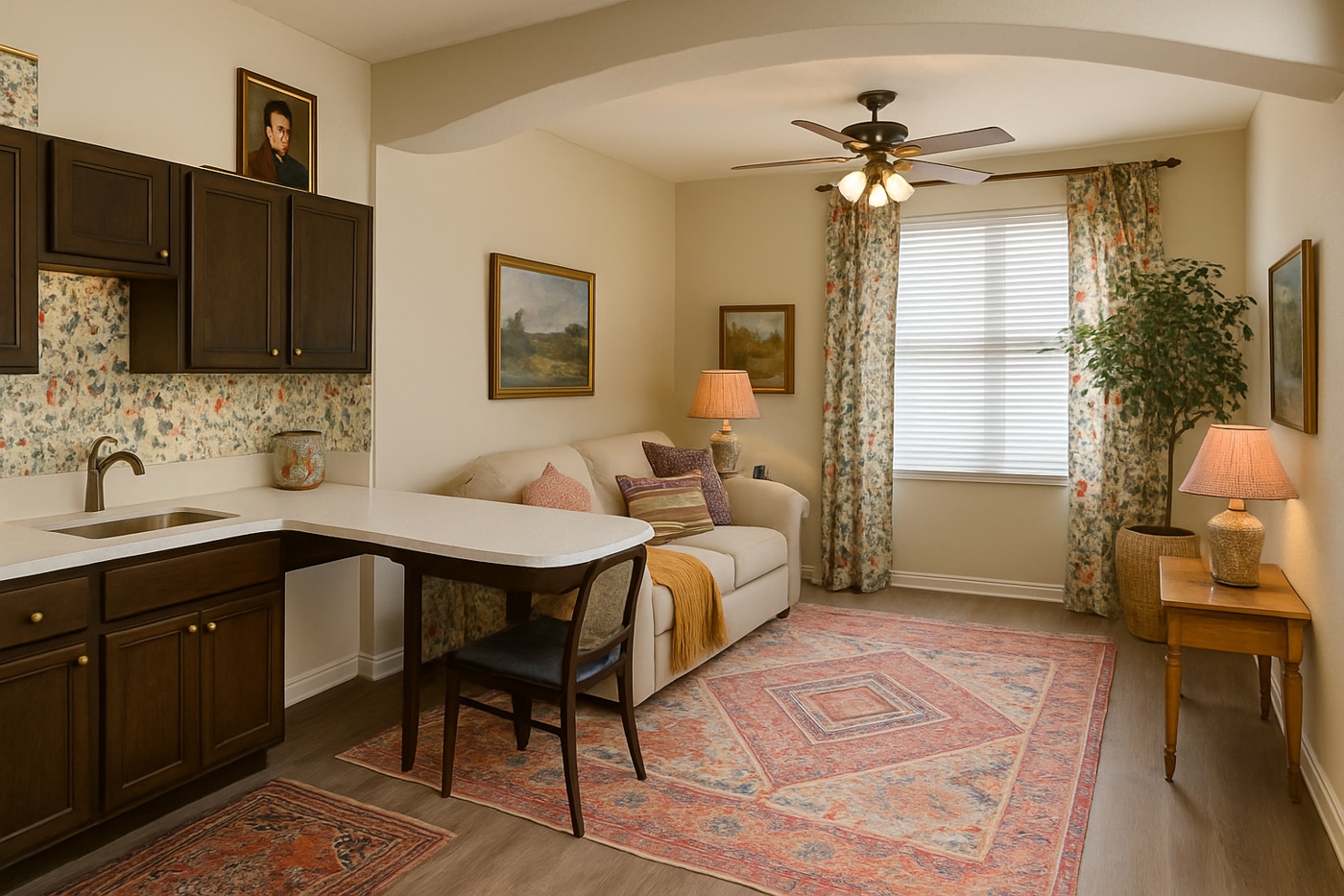 Our suites combine comfort and safety with features like wheelchair accessibility, private bathrooms, kitchenettes, and 24-hour emergency call systems. Many include outdoor patios, and each suite can be personalized with your own furniture and décor to feel just like home.